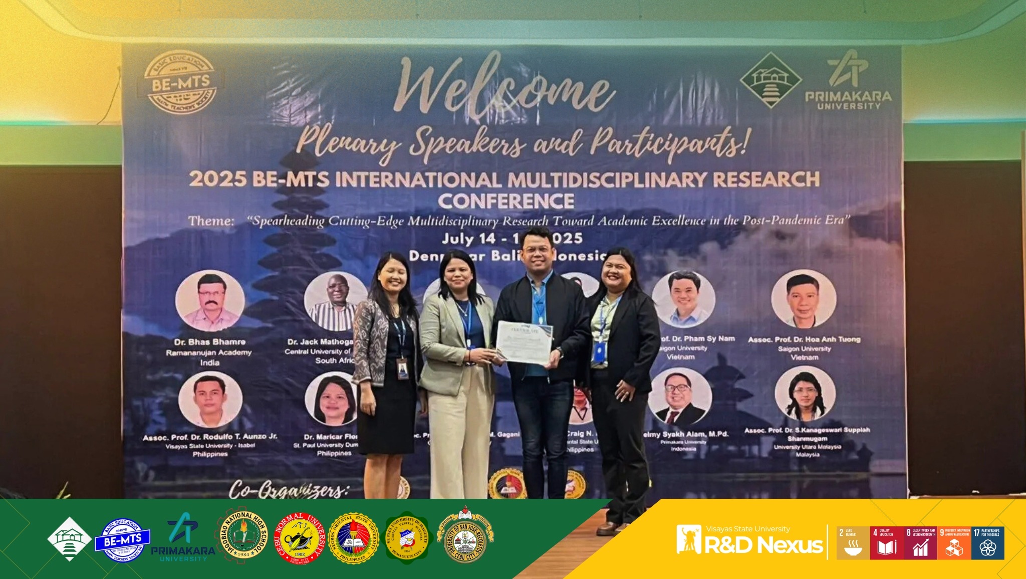 VSU-Isabel Bags Awards in BE-MTS International Multidisciplinary Research Conference 2025
